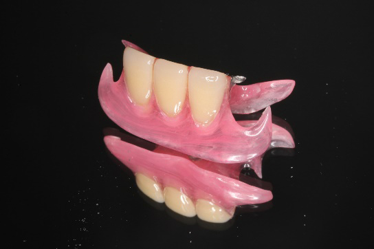 もともとアルティメットデンチャーは見た目が自然ですが、クラスプ部分にクリア加工を施すことで、さらに目立ちにくくなり審美的に大きなメリットがあります。重量も軽く適合も良いという特徴があります。そのため噛みやすく、また食べ物が詰まりにくいという特徴があります。 クリア加工を施すと、クリア部分とそれ以外の部分との境目の強度がやや落ちるため、クリア加工を施していないアルティメットデンチャーと比べ、破損のリスクが高まることが考えられます。 |
