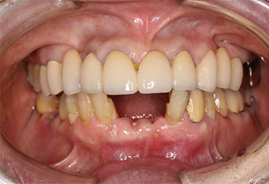 | ③ 処置にかかった期間 | 治療期間は上記症例と同様、抜歯後4週間程度、傷口の治りを待ってから型取りを行いました。抜歯、傷口の治癒期間、義歯の型取り、試適(最終確認)、完成まで計4回(7週間程度)の受診が必要となりました。 |
