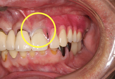 | ② 処置詳細 | 40代男性 左上のブリッジの支えの歯が折れてしまい、抜歯が必要となってしまいました。当初インプラント治療をご希望されましたが、他の歯との兼ね合いでアルティメットデンチャー(クラスプ部クリア加工あり)にて治療を行うことになりました。 |
